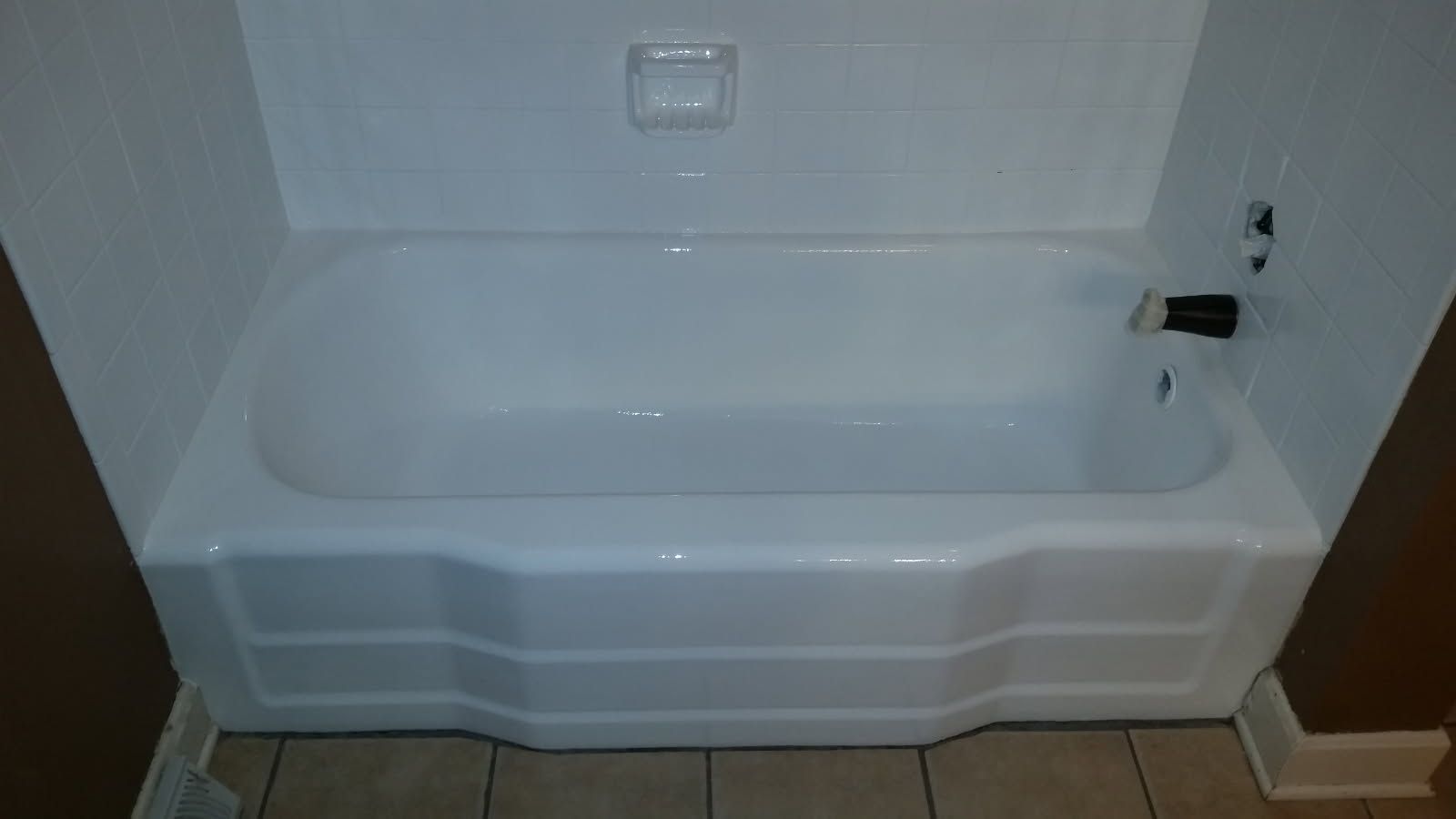 A bonding agent and primer are then applied, followed by a durable topcoat that delivers a glossy, like-new appearance. The result is a hard, water-resistant finish that looks and feels like new ceramic or porcelain tile - without ever tearing out a single piece.